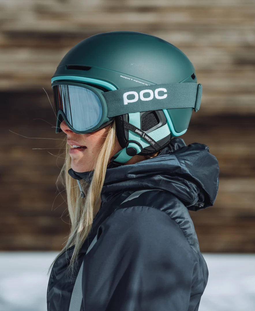 The helmet is compatible with the Obex Communication Headset (sold separately) and is designed for seamless compatibility with POC goggles.