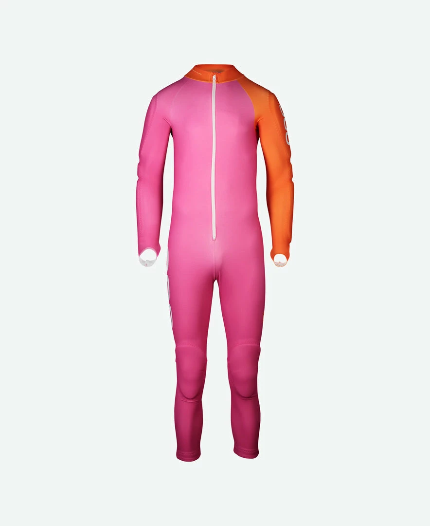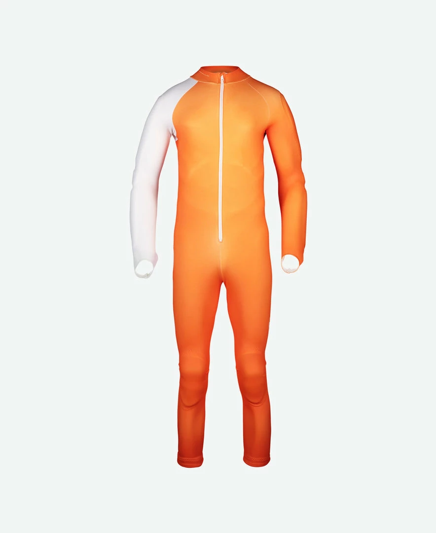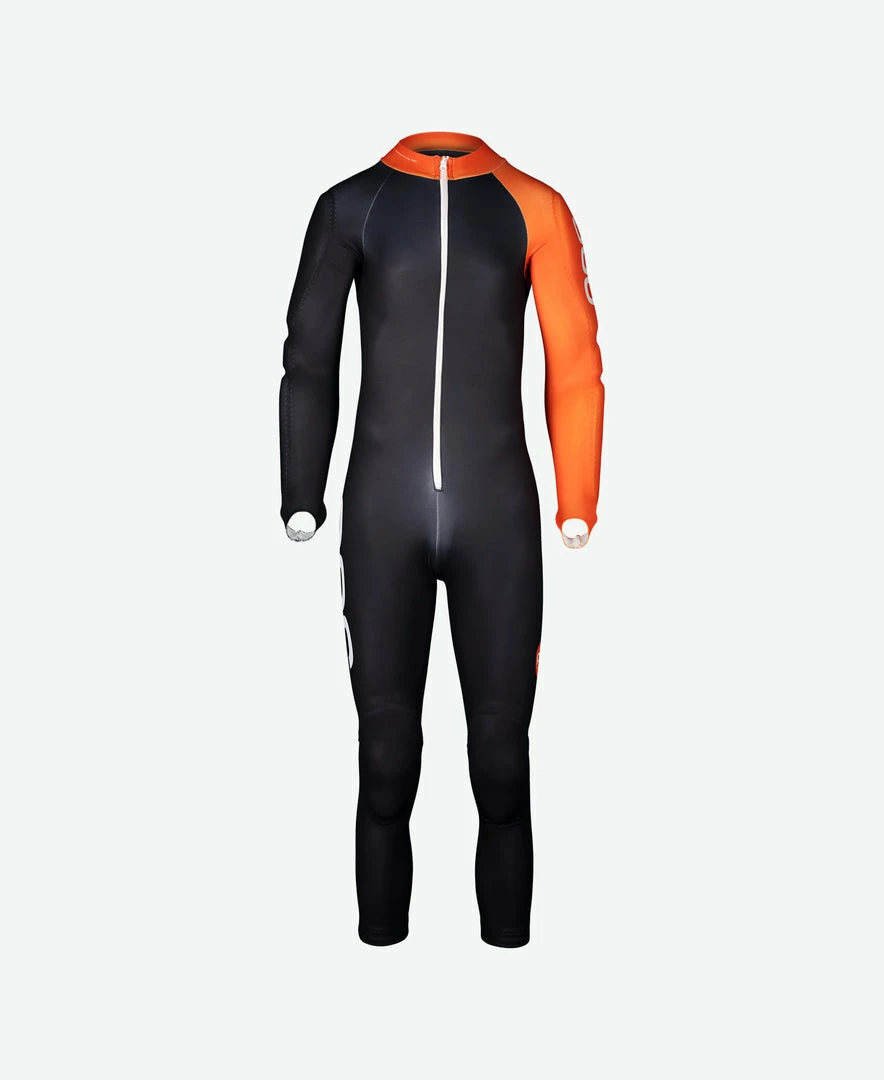 The speed suit is approved by the FIS, so it can be used in all official competitions. Constructed from a new, more durable fabric, the suit is less susceptible to snagging and piling damage from the Velcro fastenings on shin and forearm protectors. The Skin GS JR has protectors built into the arms, hips and legs. Designed to be used with body armor, the speed suit works seamlessly with POC VPD back protectors and armor. Both the Resistance Layer JR and Base Armor JR protective base layers with Dyneema® are designed to fit under the Skin GS to enhance protection from lacerations. Grippers at the lower leg openings and longer sleeves with thumbholes work to keep the suit in place as the body moves.