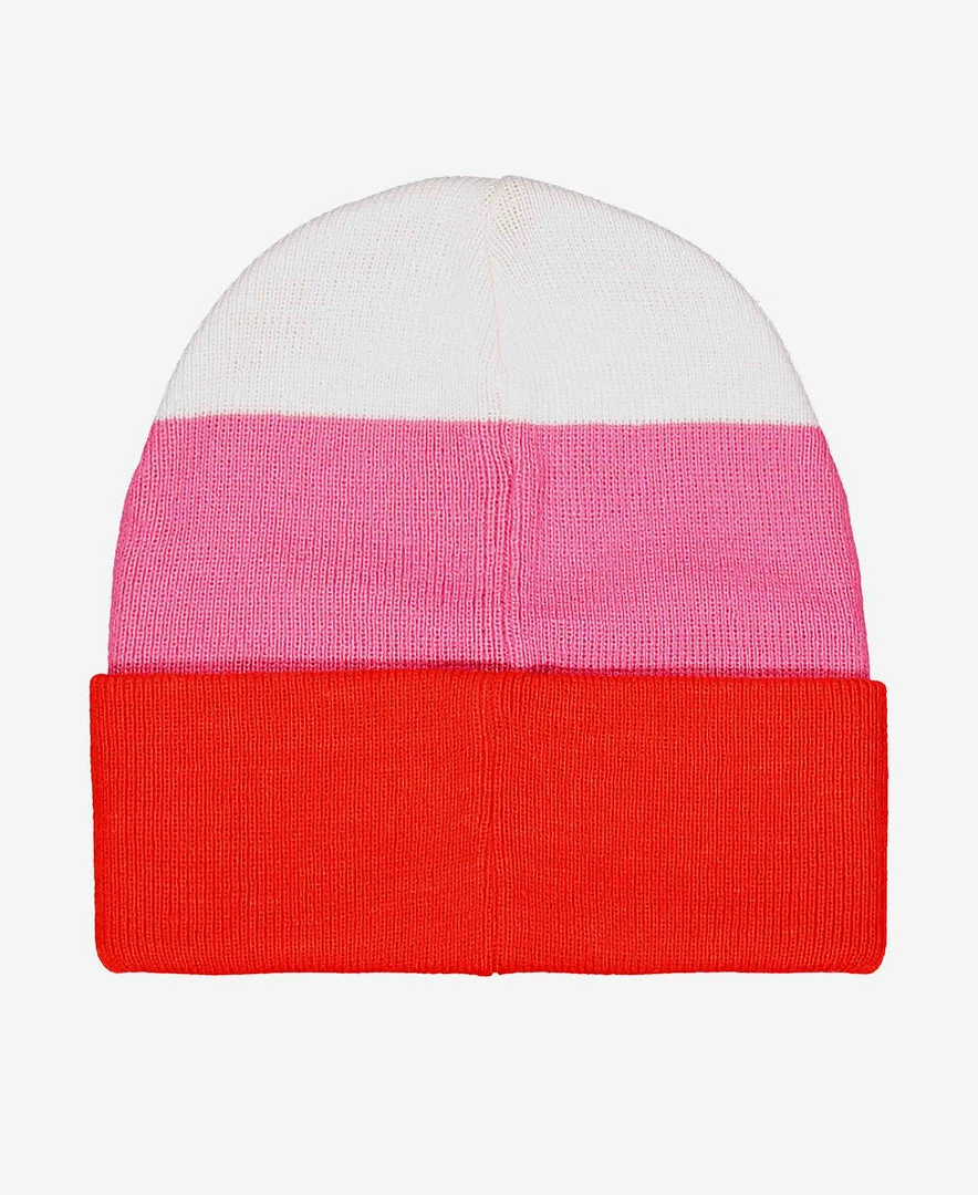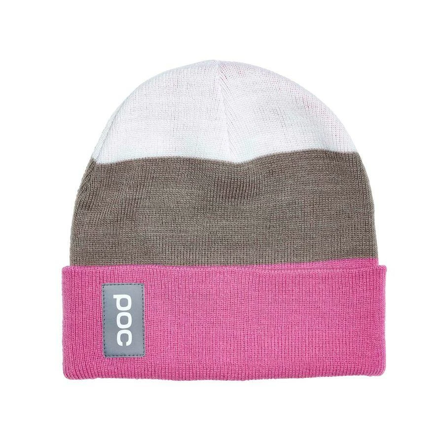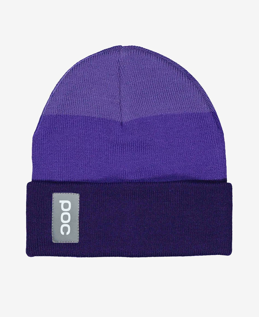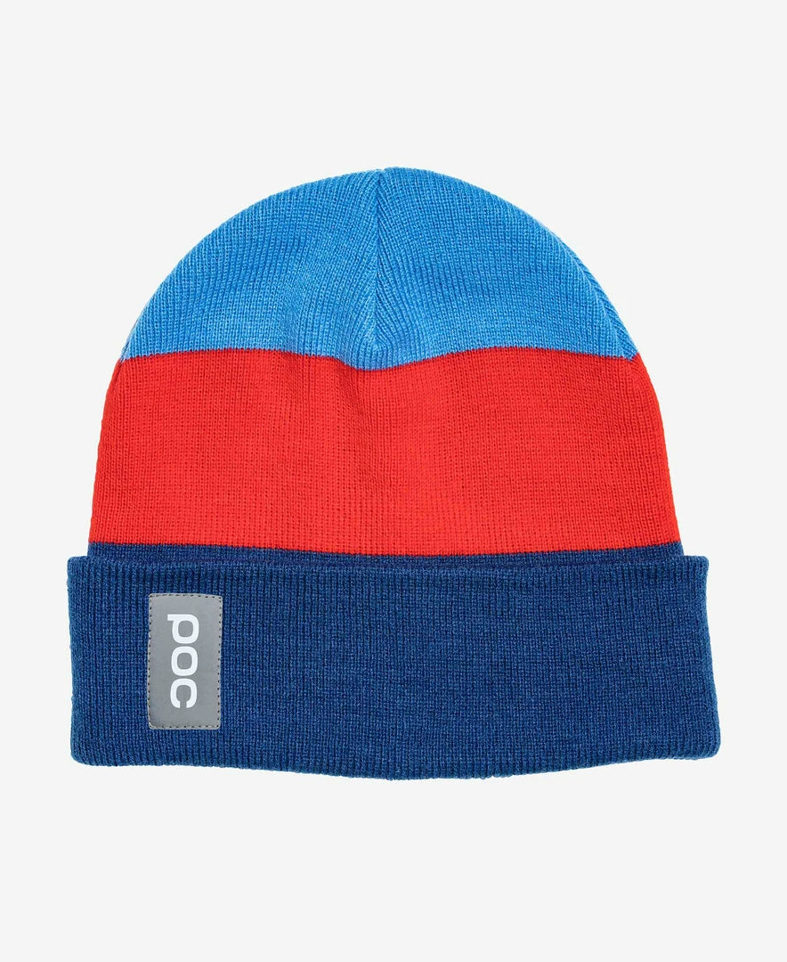 A double-knit semi-loose fit beanie with striped color blocks. A reflective POC label on the folded edge enhances visibility.